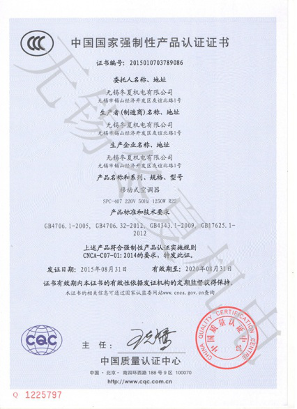 近日,百老汇app入口(中国)官方网站-登录入口的移动工业冷气机、暖风机产品7个型号取得了中国质量认证中心颁发的3C强制认证证书。